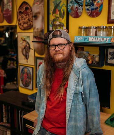 Kyle is a modern electric tattooer with 14 years of professional tattoo experience. After receiving his first tattoo license in 2010 Kyle then set to try as many different tattoo styles as possible to become a well rounded, and knowledgeable tattooer. Kyle really enjoys tattooing anime, American traditional, Japanese traditional, and any type of flowers. Hobbies also include camping, disk golf, skateboarding, oil painting, and catching up on one piece.